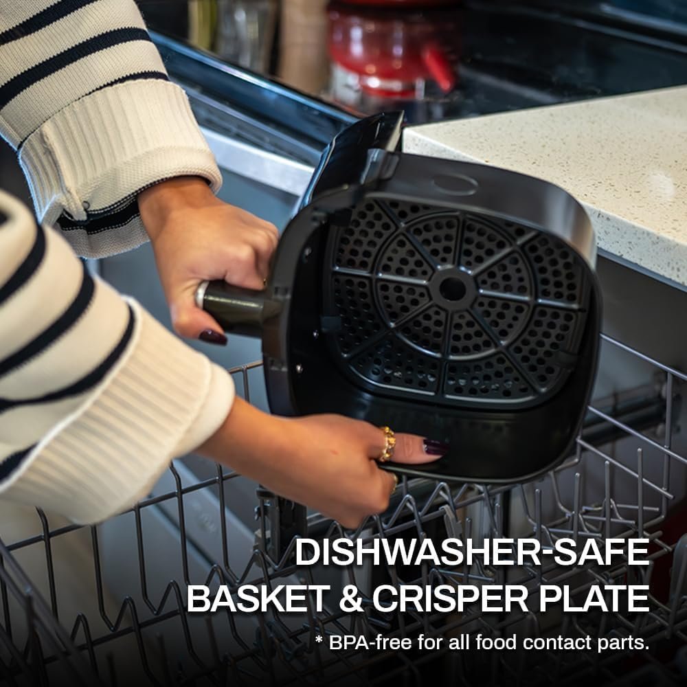 • QUICK & EASY CLEAN-UP: Non-stick, dishwasher-safe stainless steel air fryer basket, and crisper plate go straight into the dishwasher for cleaning, bringing huge convenience to your kitchen. BPA-free for all food contact parts.